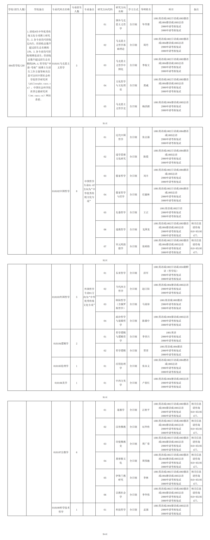 2026年中国社会科学院大学哲学院博士研究生招生专业目录